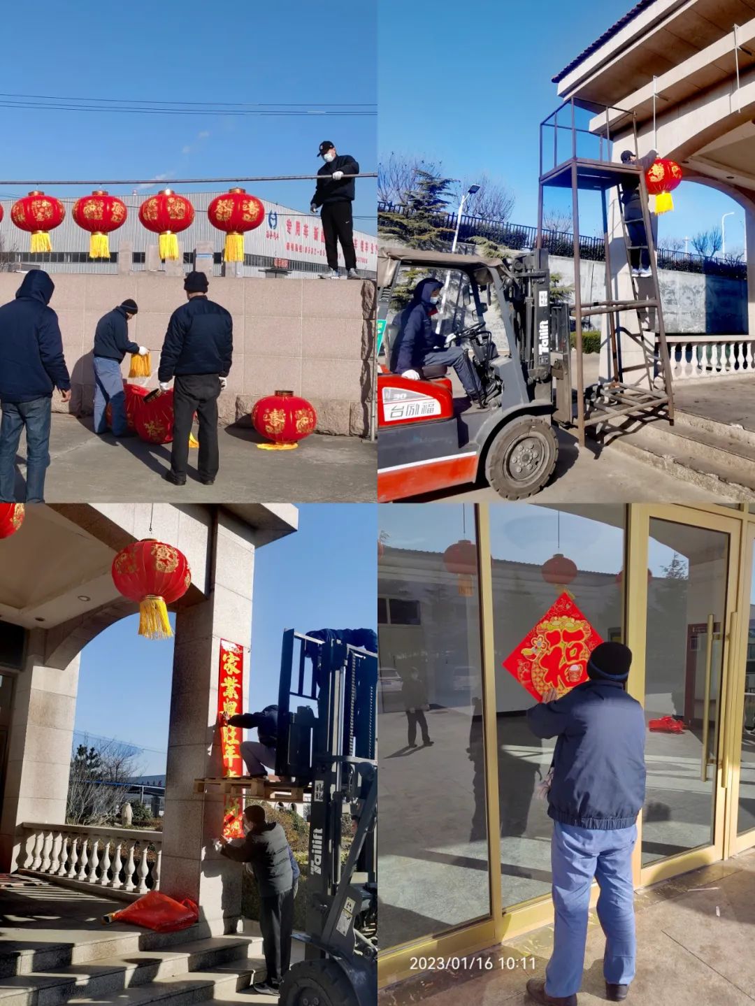 同時(shí)為了讓大家度過一個(gè)祥和、整潔的新春佳節(jié),企管部—安保組織外保潔人員對(duì)公司上下進(jìn)行大清掃工作,徹底清除衛(wèi)生死角,為公司環(huán)境深度“美顏”。一個(gè)個(gè)火紅的燈籠,充滿喜慶、吉祥的福字,寄予美好祝福的春聯(lián),寄托了辭舊迎新、接福納祥的美好愿望。