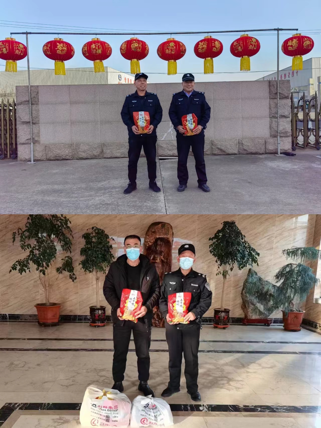 另外,為了讓新春佳節(jié)還在辛勞付出的安保員,感受到春節(jié)的溫暖。也為了對(duì)他們的付出表達(dá)真誠(chéng)的感謝,公司提早的采購(gòu)了假期執(zhí)勤物資,為安保員們送上親切的慰問和溫暖的祝福。禮物雖輕,卻飽含了公司對(duì)員工滿滿的祝福與關(guān)懷。領(lǐng)到物資的安保員們臉上都洋溢著幸福的微笑,溫馨祥和的氛圍漫過了冬日的嚴(yán)寒。